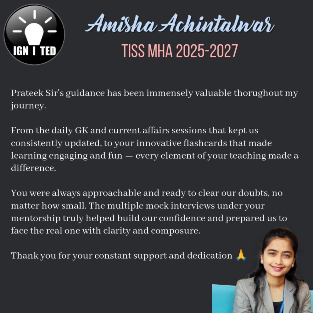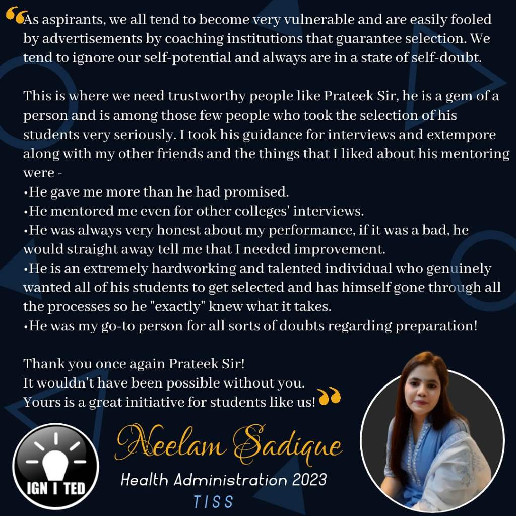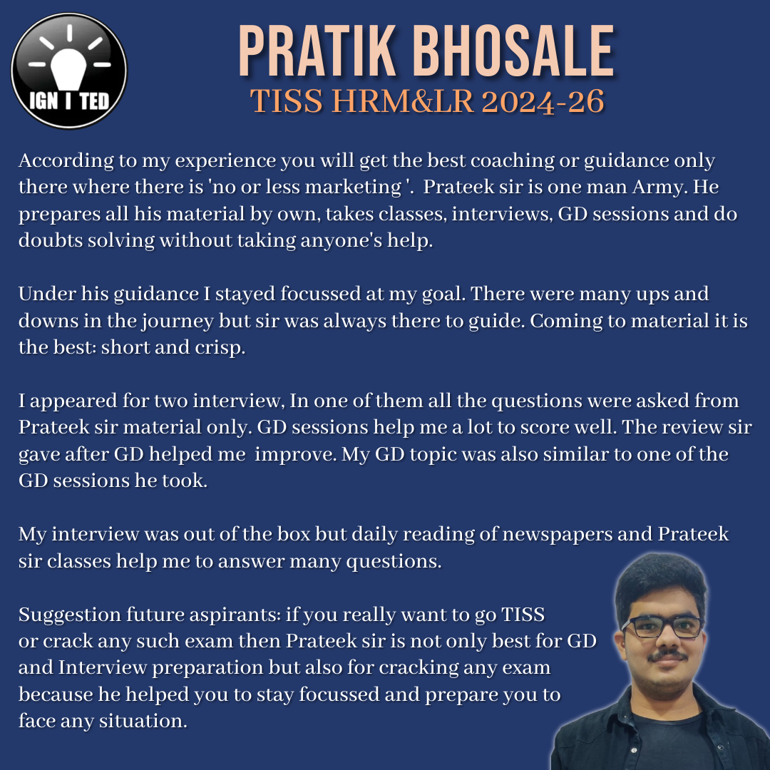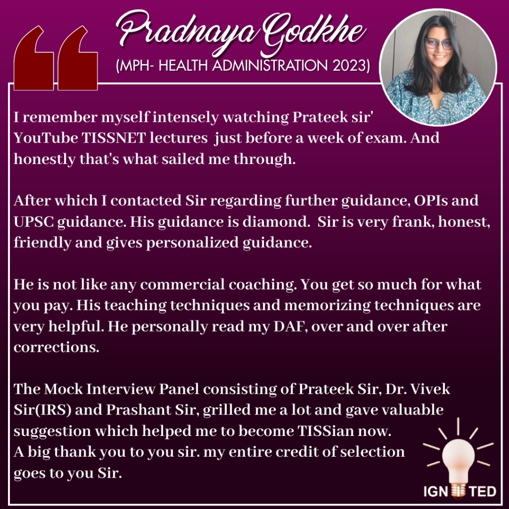 In past 3 years he has mentored, taught and guided more than 1000 students giving excellent results. He provides guidance for UPSC, PCS, TISS, XAT and OMETs.