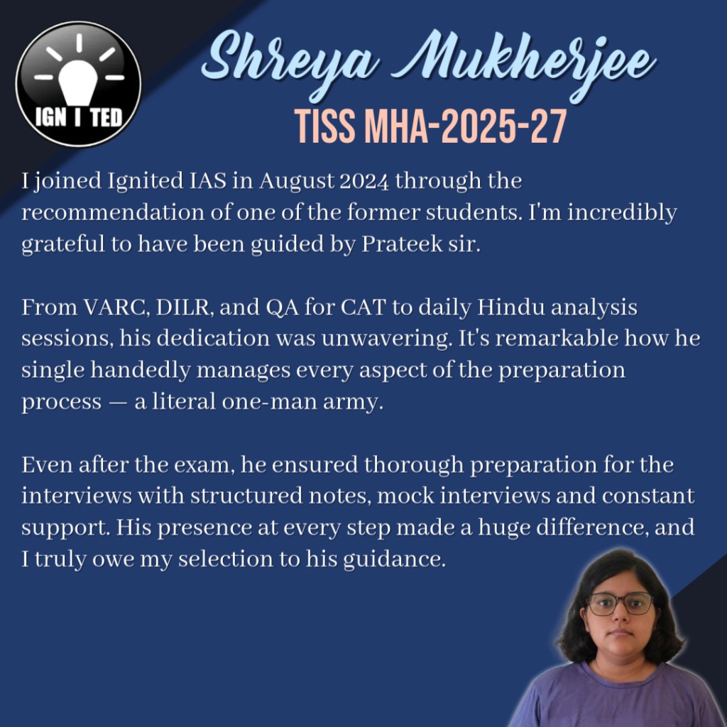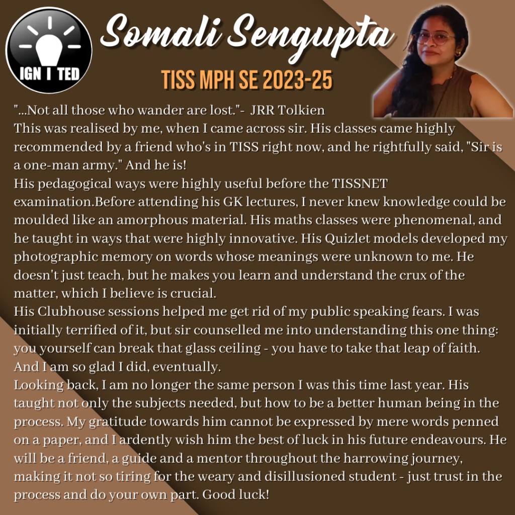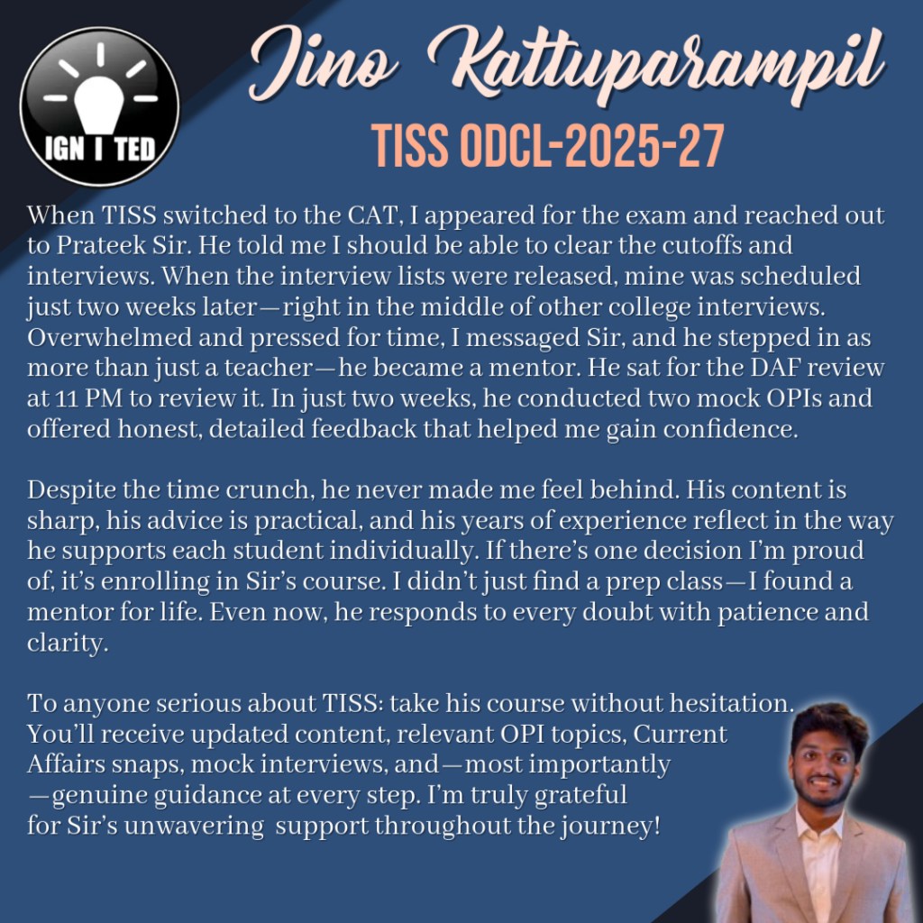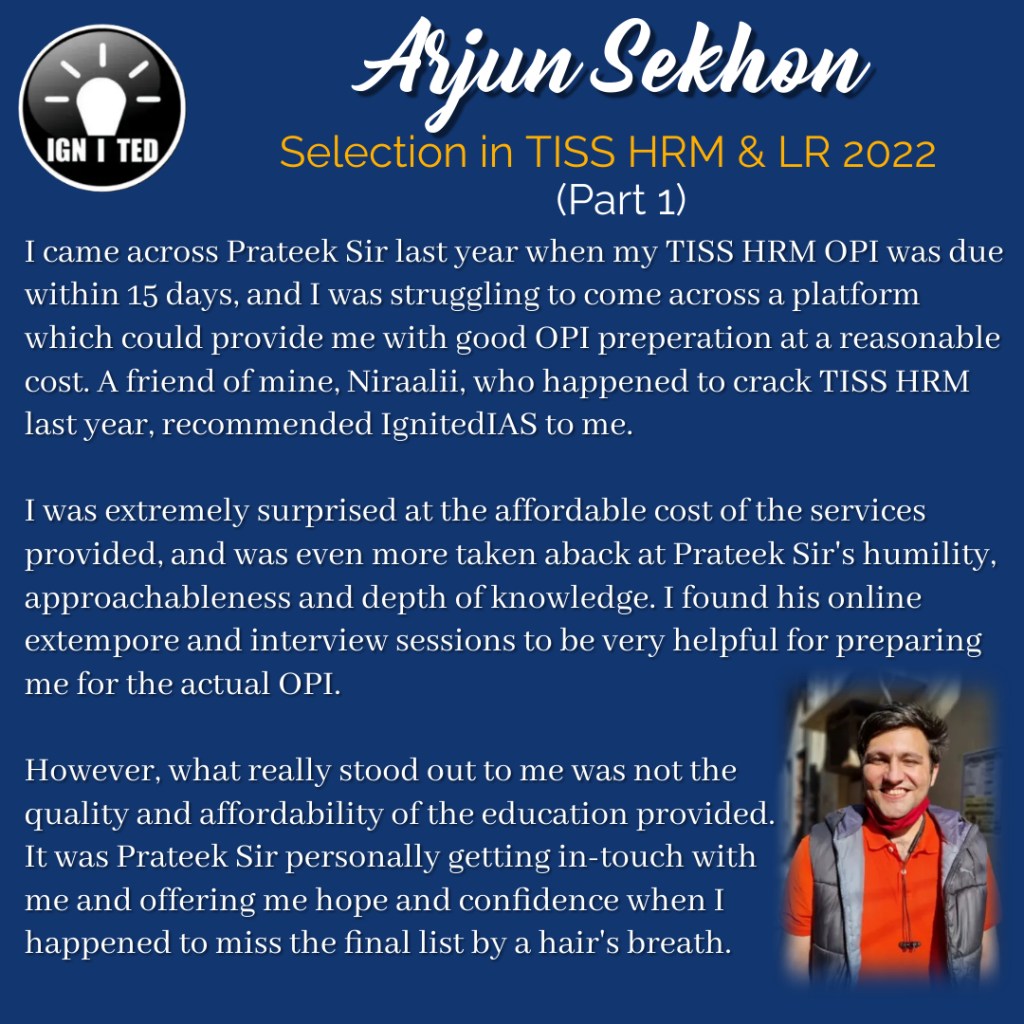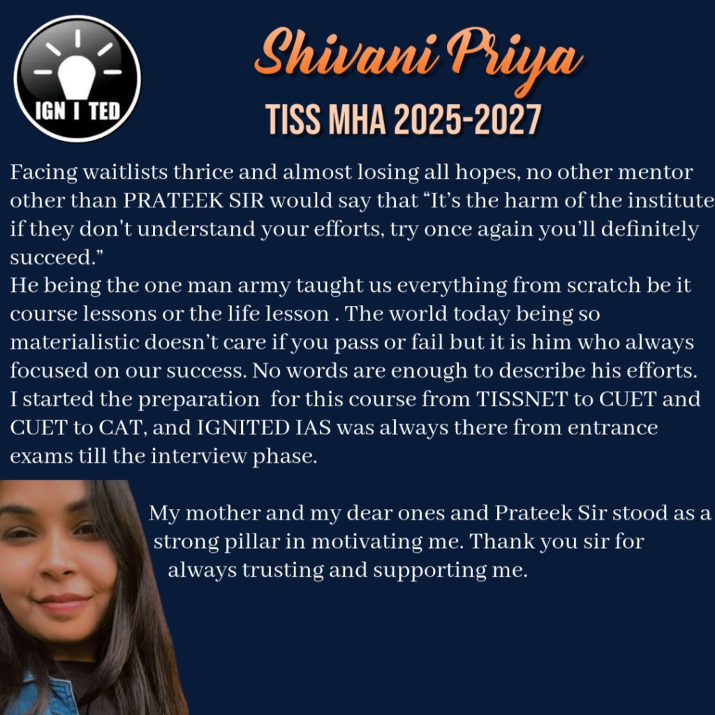 In past 3 years he has mentored, taught and guided more than 1000 students giving excellent results. He provides guidance for UPSC, PCS, TISS, XAT and OMETs.
