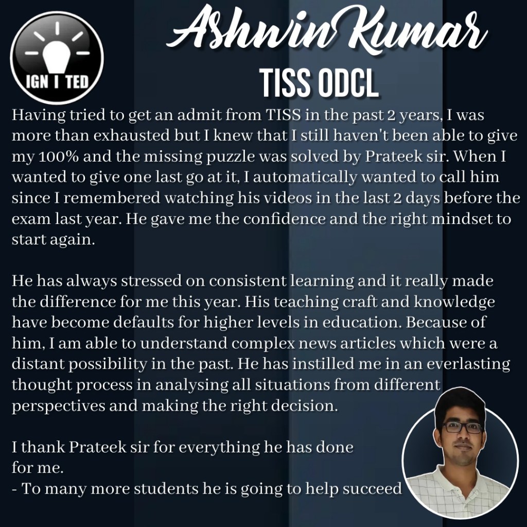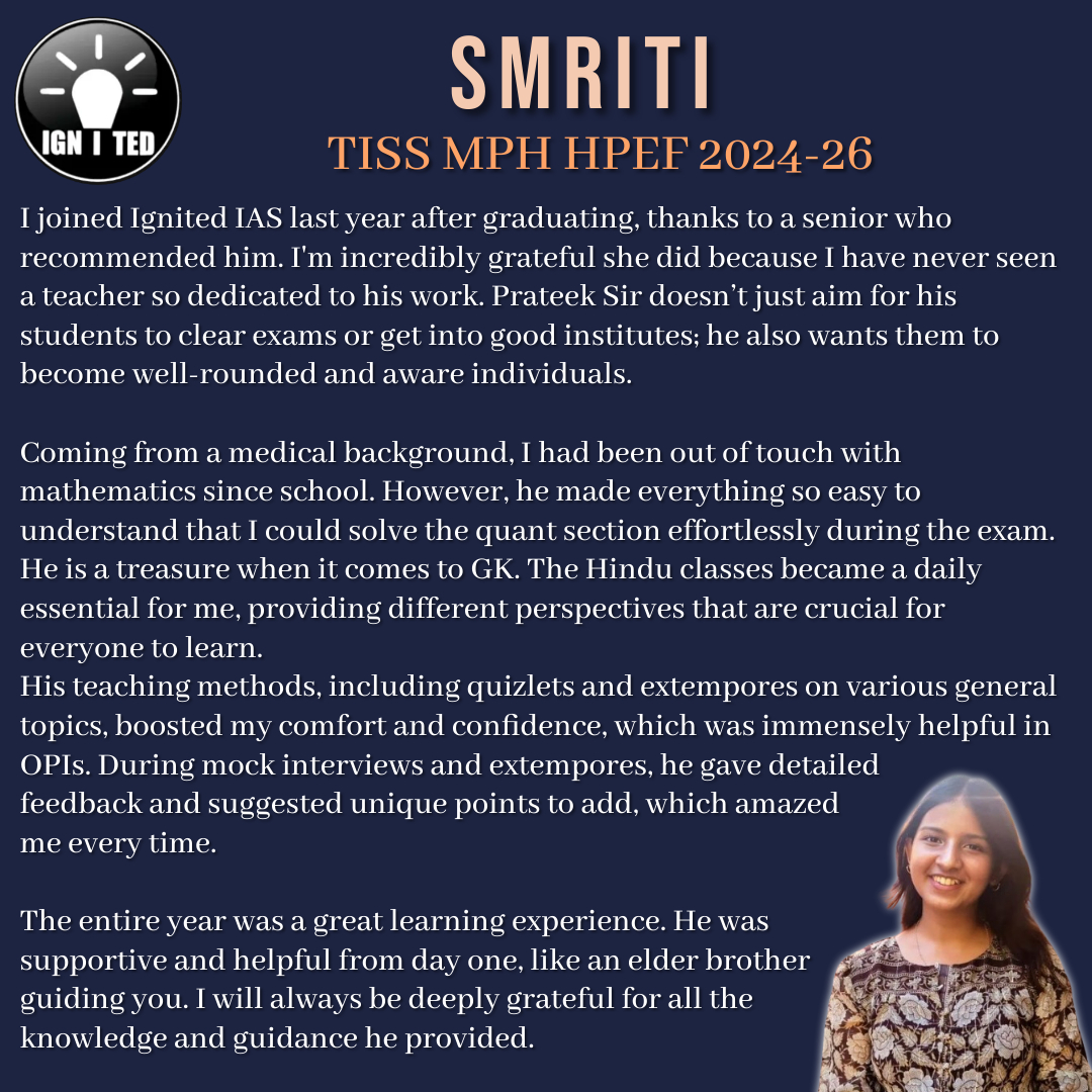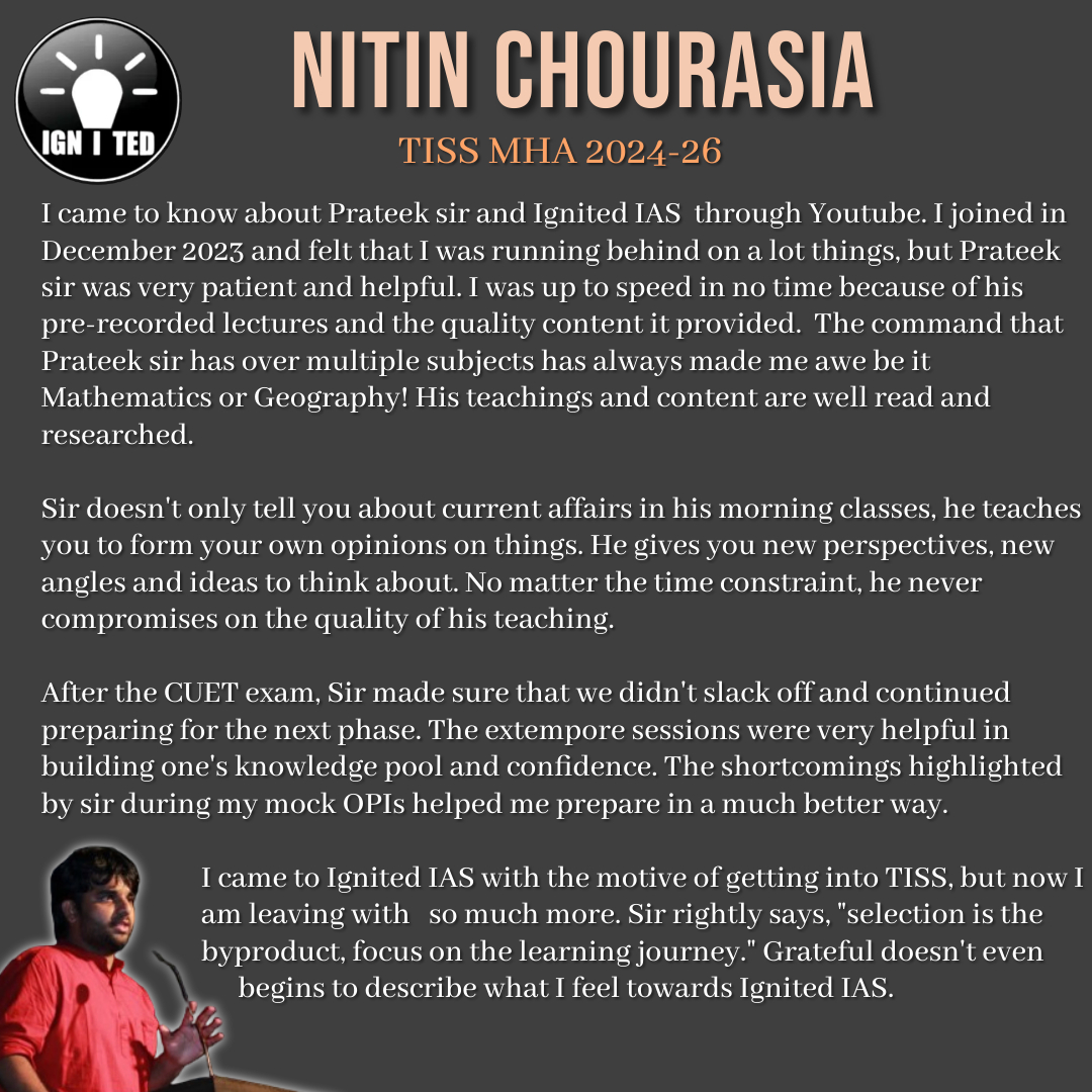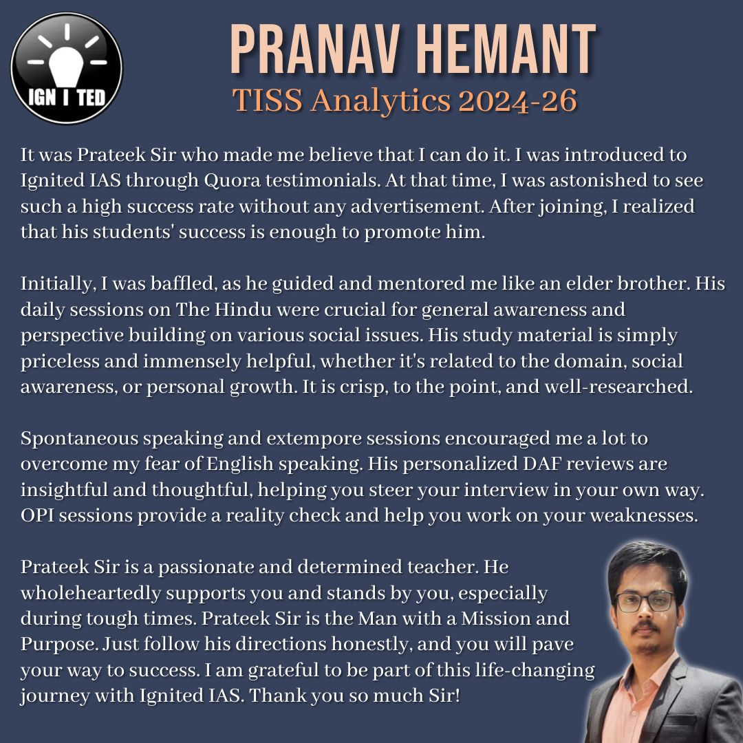 Prateek Prasoon is the founder of IGNITED IAS. The aim of his institution is to create a Centre of Excellence driven by values.